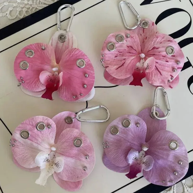 2025 Flower Phone Charms Phalaenopsis Orchid Keychain Ring Imitation Flower Pendant Fashion Cloth Bag Chains Gift Jewelry Decor