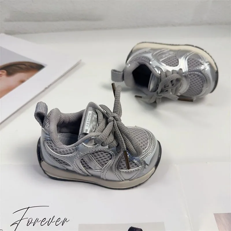 2025 Toddler Kid Breathable Orbit Metallic Rubber Mesh Sneaker Children Casual Fashion Shoe Baby Boy Girl Sports Walking Shoes
