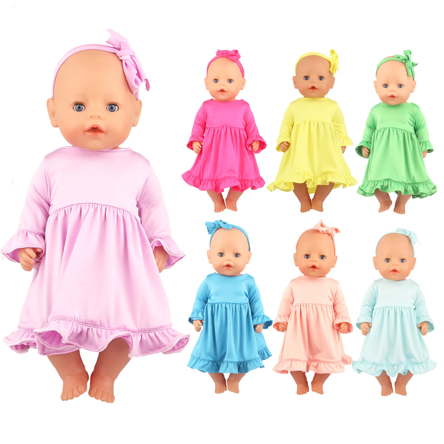 Elastic Doll Dress Set with Hairband Suitable for 18 Inch American Dolls And 43cm Baby Newborn Girls Doll Clothes OG Toy